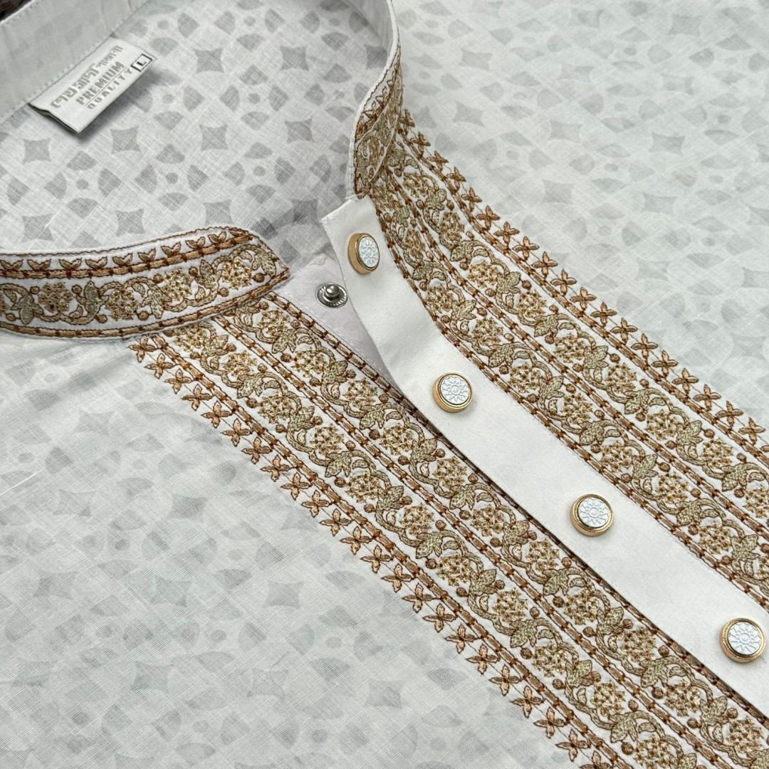 এই পান্জাবিটি তৈরি হয়েছে প্রিমিয়াম কোয়ালিটির ব্রাশু কাপড়  দিয়ে, যা একদিকে যেমন আরামদায়ক, তেমনি টেকসই ও নান্দনিক। প্রতিটি সেলাইয়ে ফুটে উঠেছে সূক্ষ্ম কারিগরি আর আধুনিক ফিটিং-এর নিখুঁত ছোঁয়া।